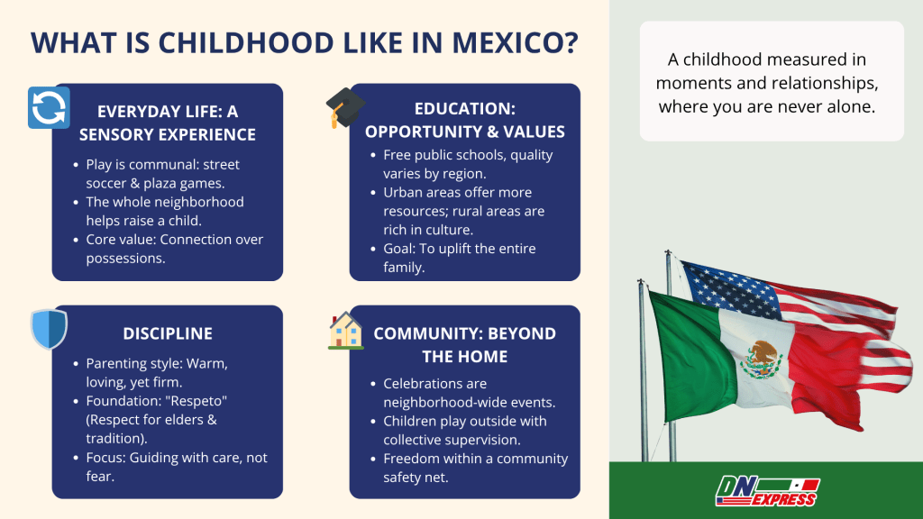 In Mexico, childhood is measured by moments: the sound of laughter echoing through the block, the smell of tamales on a Sunday, and the sense that wherever you go, you're never truly alone.