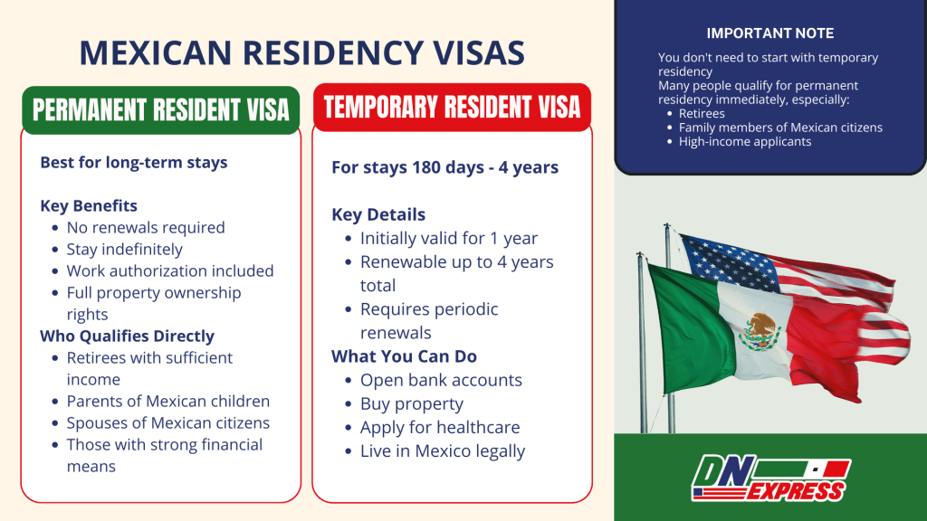 You don't need to start with a temporary visa. Some people qualify for permanent residency right away, especially retirees, parents of Mexican children, or those married to Mexican citizens.